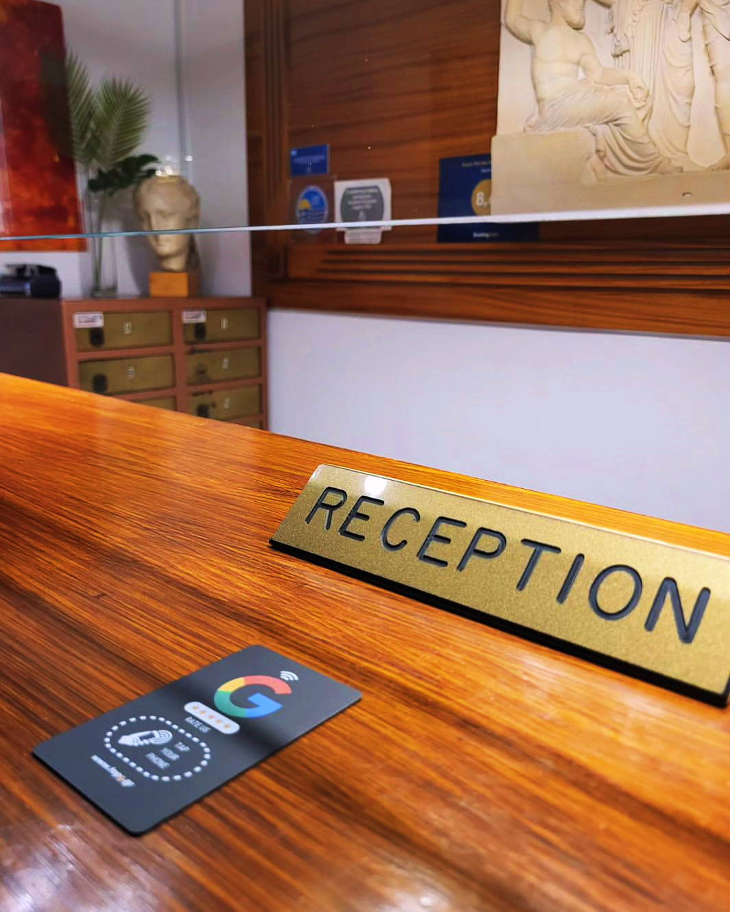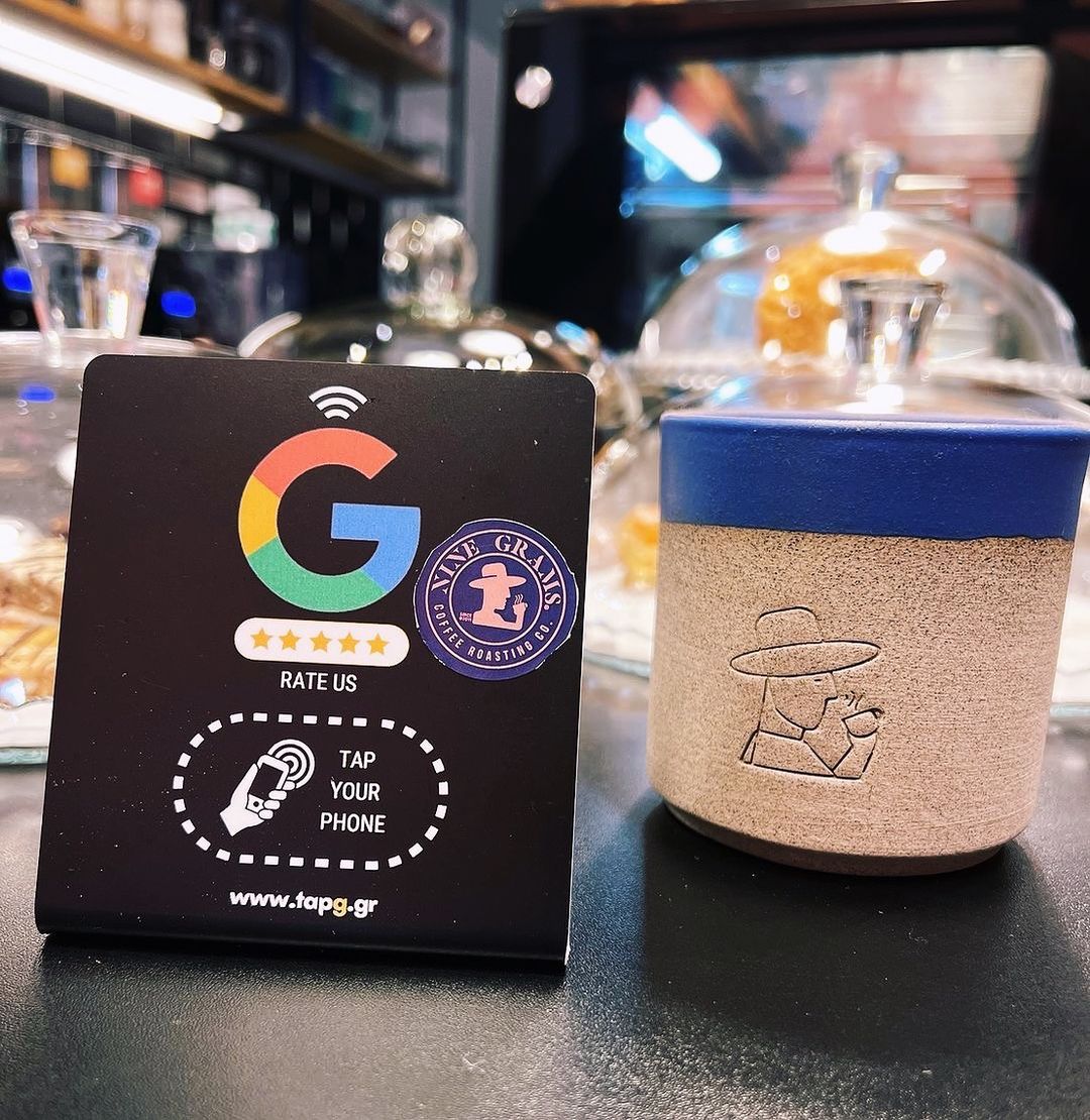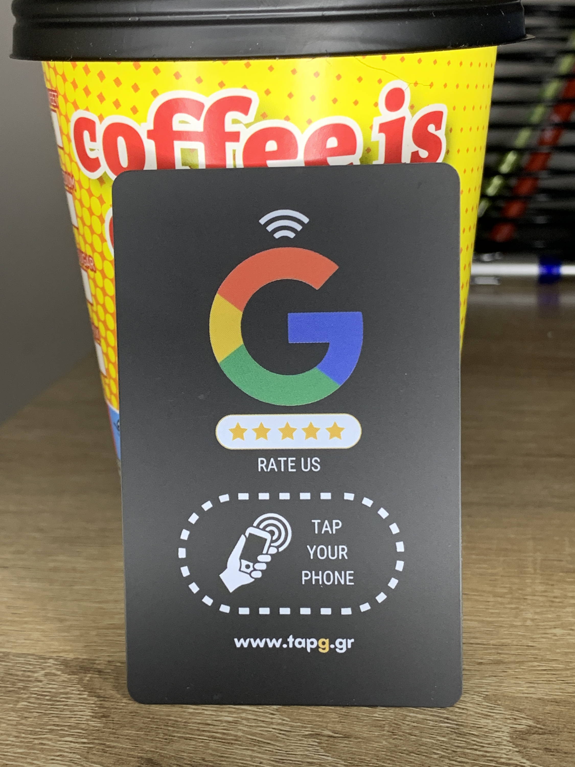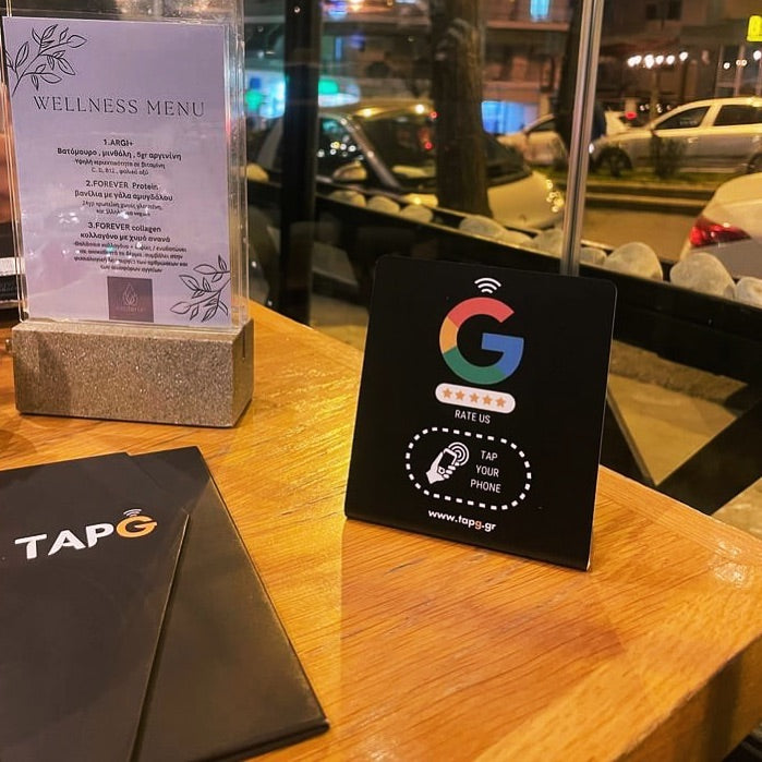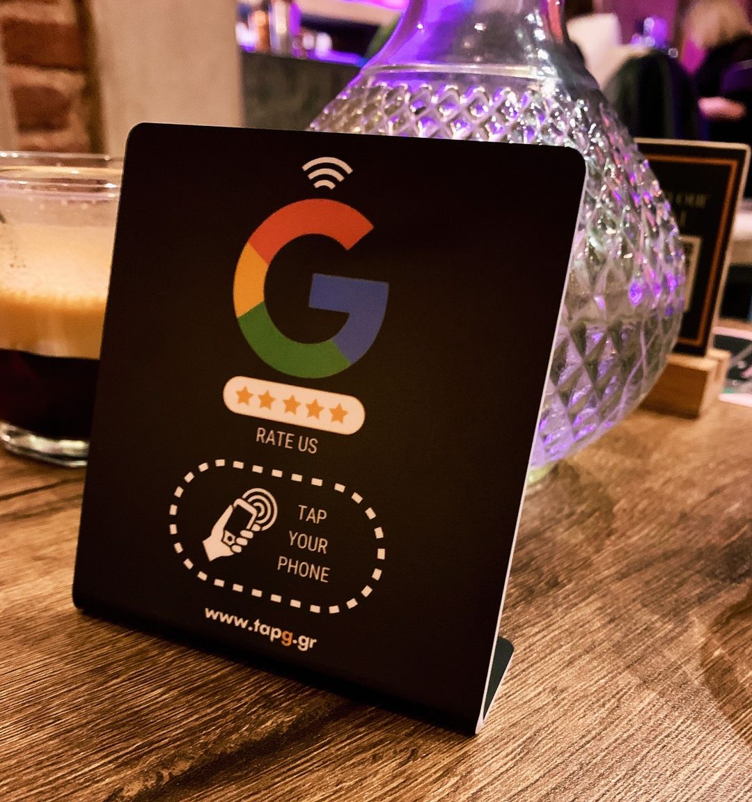 Το TAPG χρησιμοποιεί τεχνολογία NFC, η οποία επιτρέπει στους πελάτες να αφήνουν κριτικές ακουμπώντας  απλώς το τηλέφωνό τους στην κάρτα ή σε οποιοδήποτε από τα προϊόντα μας. Είναι γρήγορο και εύκολο!